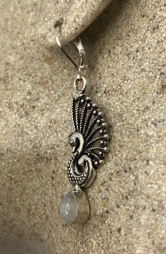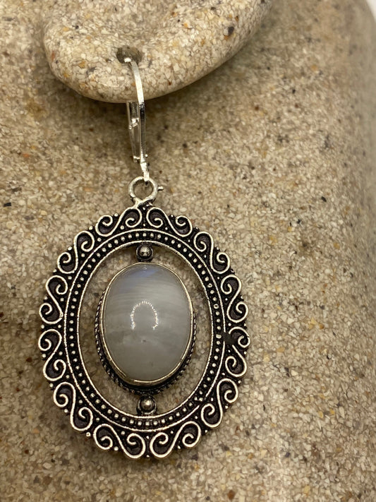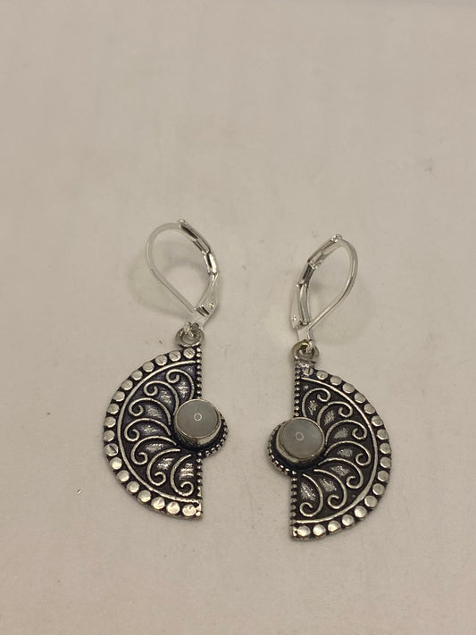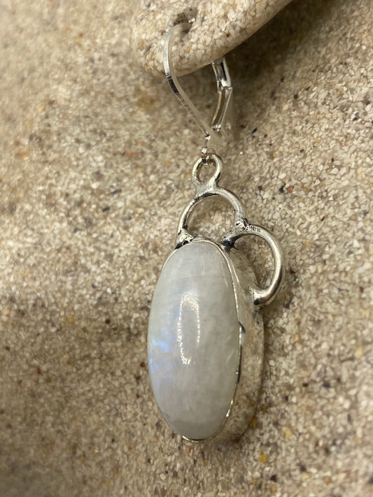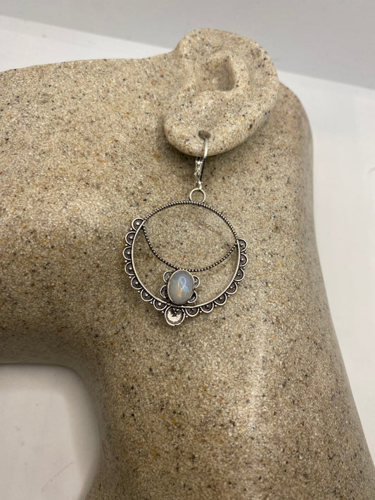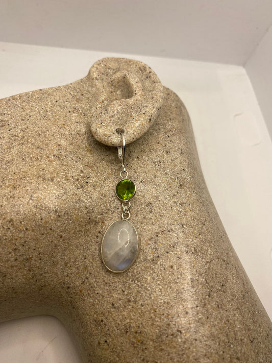 Vintage Rainbow Moonstone Sterling Silver Lever Back leaf Dangle Earrings