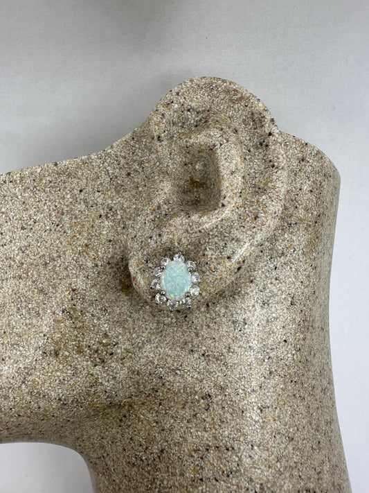 Vintage White Opal Earrings White Sapphire 925 Sterling Silver Dangle