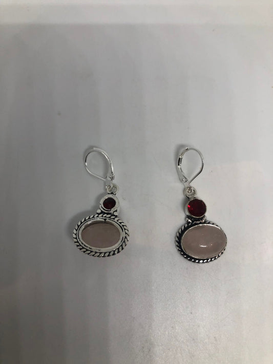 Vintage Genuine Rose Quartz Gemstone Filigree Sterling Silver Lever Back Dangle Earrings