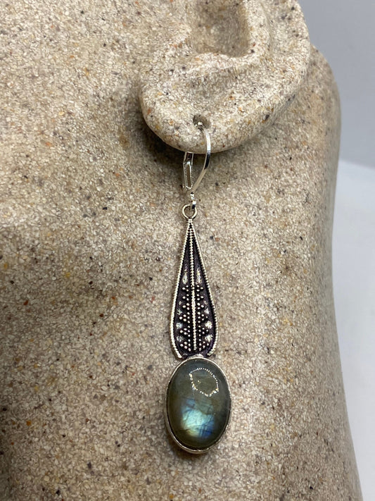 Antique Vintage Green Labradorite Silver Dangle Earrings
