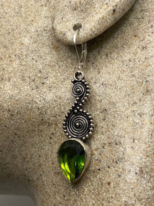 Antique Vintage Green Peridot Silver Dangle Earrings