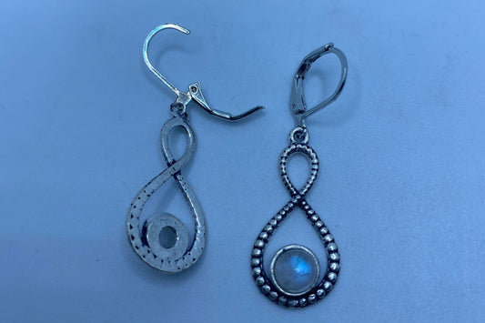 Vintage Rainbow Moonstone Sterling Silver Lever Back Dangle Earrings