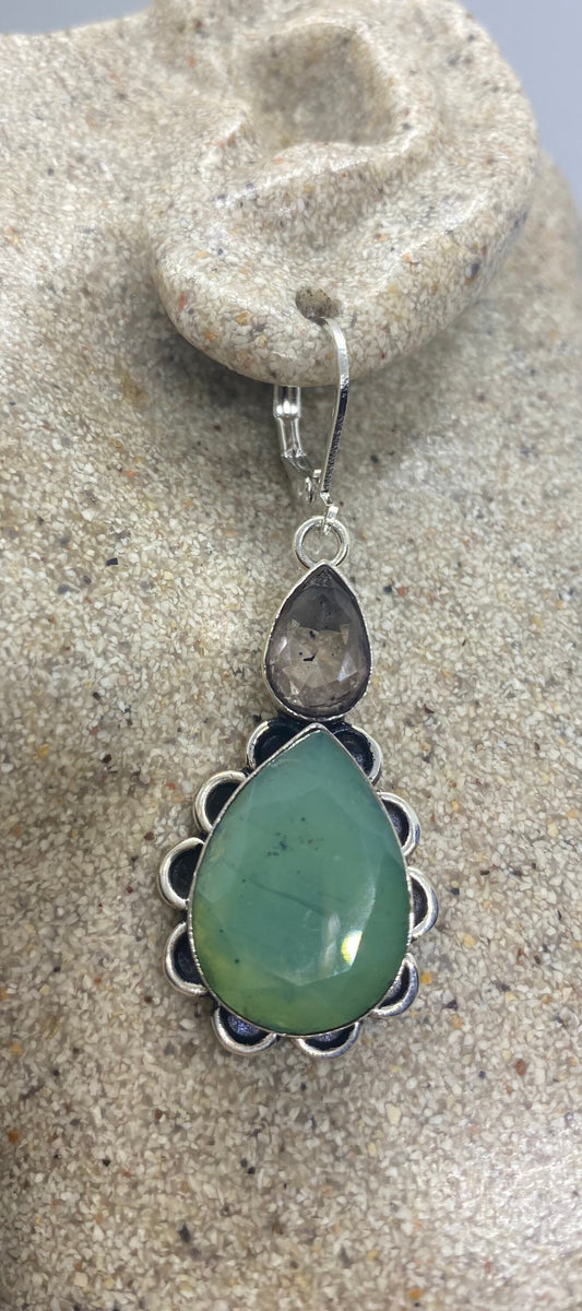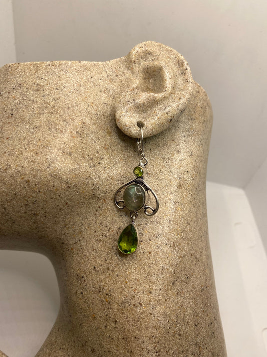 Antique Vintage Green Labradorite Peridot Silver Dangle Earrings