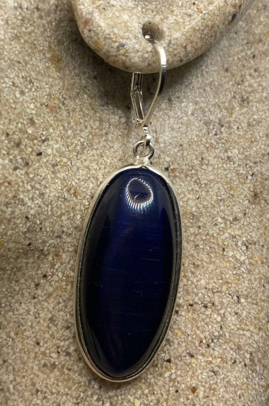 Vintage Sterling Silver Blue Cats Eye (Synthetic) Earrings