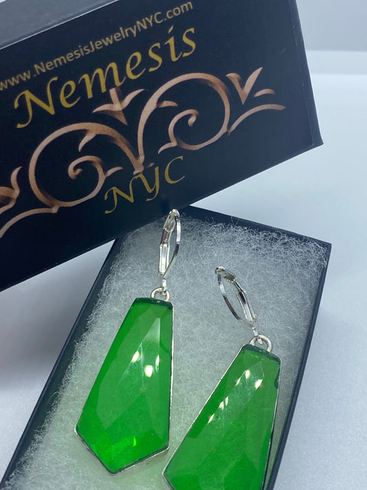 Vintage Green Crystal Glass Earrings 925 Sterling Silver Leverback