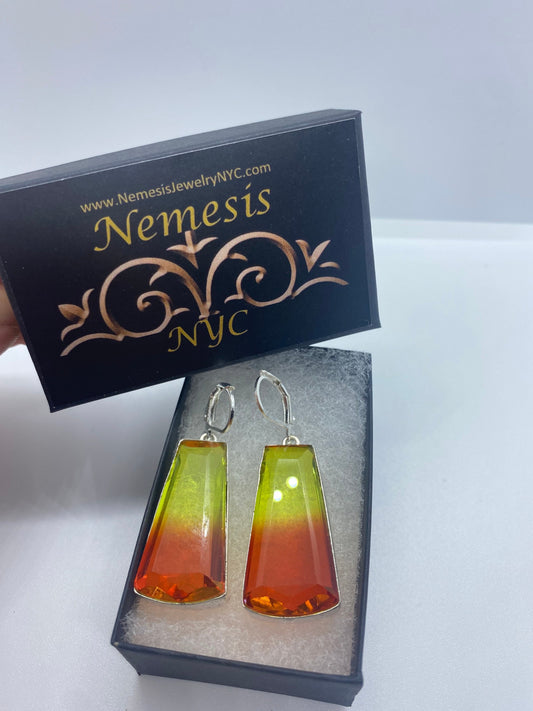 Antique Vintage Red Yellow Volcanic Glass Silver Dangle Earrings