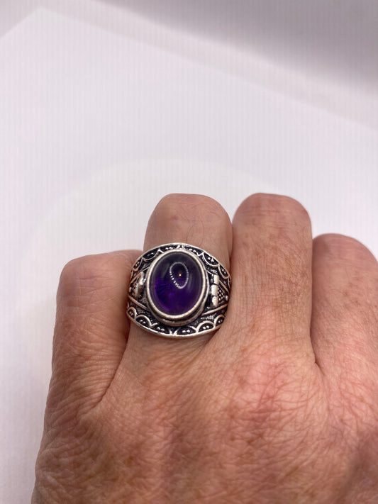 Vintage Handmade Genuine Purple Amethyst Filigree Setting 925 Sterling Silver Gothic Ring