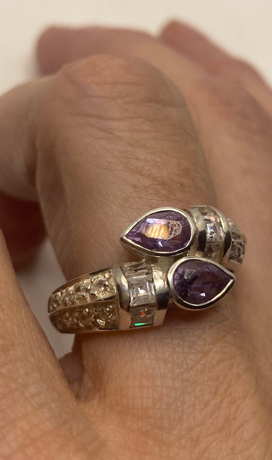 Vintage Purple Amethyst Ring 925 Sterling Silver Size 7.5
