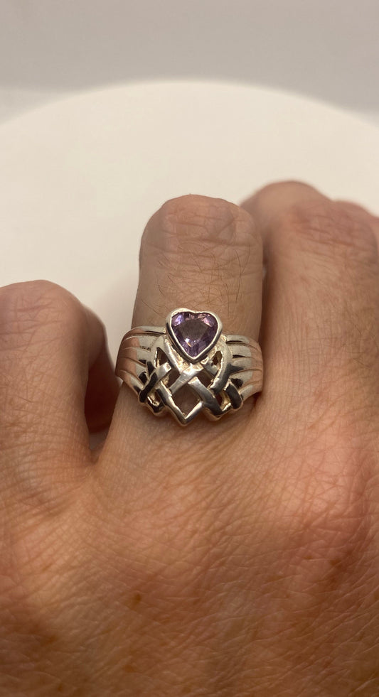 Vintage Purple Amethyst Heart 925 Sterling Silver Ring