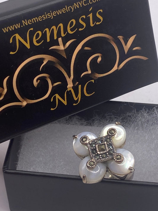 Vintage Mother of Pearl 925 Sterling Silver Marcasite Ring