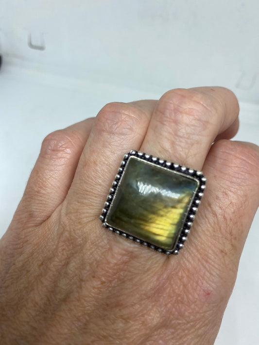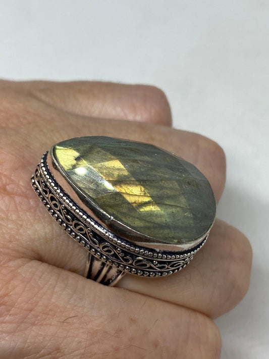 Vintage Large Blue Green Labradorite Stone Silver Ring