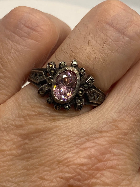 Vintage Handmade Pink Toumaline and White Sapphire 925 Sterling Silver gothic Ring
