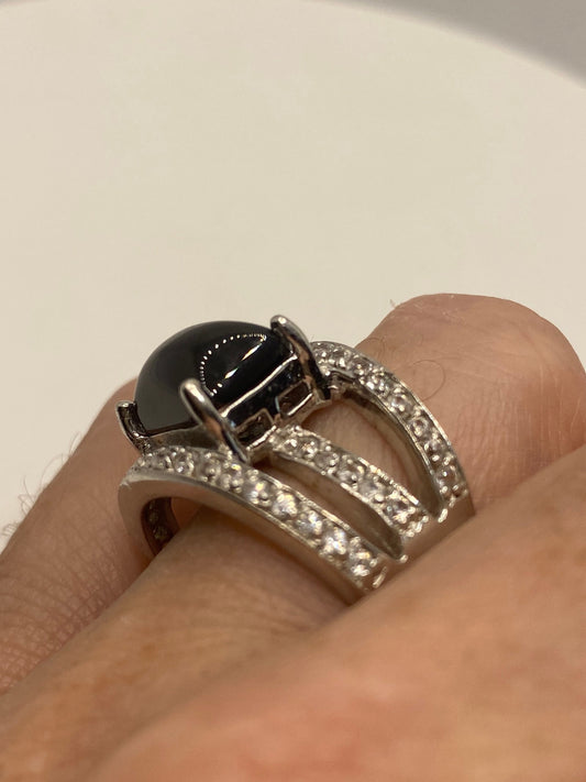 Vintage Black Rainbow Obsidian 925 Sterling Silver Gothic Ring