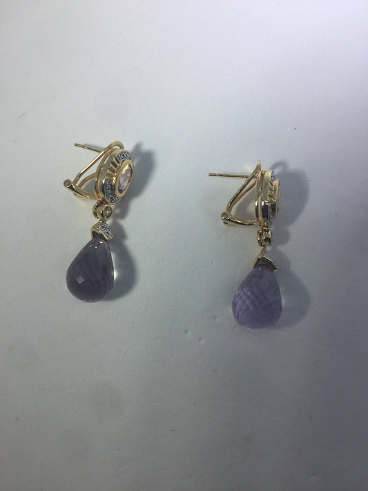 Vintage Amethyst Chandelier Earrings Golden 925 Sterling Silver Omega