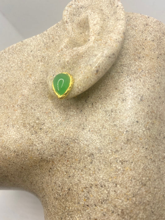 Vintage Green Jade Golden Bronze Earrings