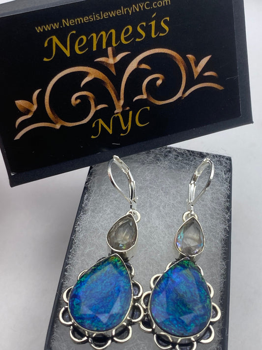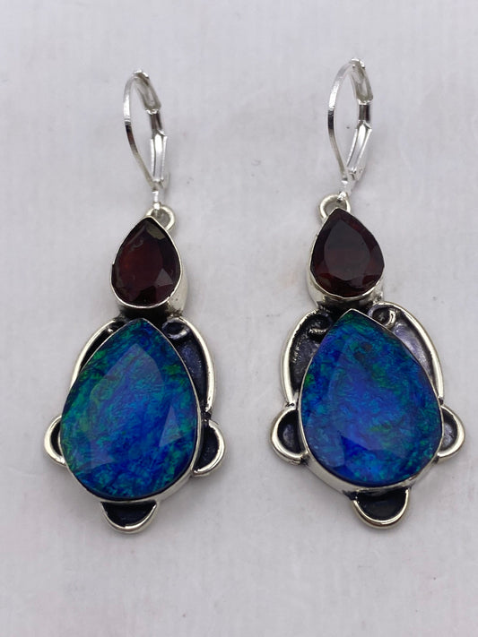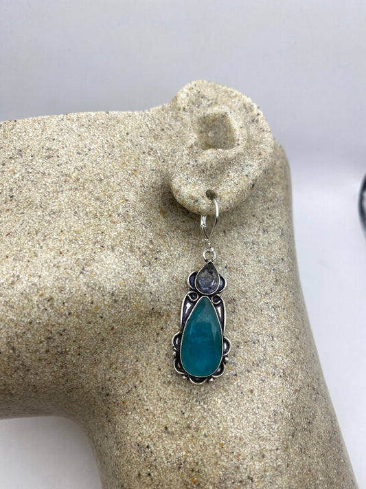 Vintage Blue Opal Volcanic Glass Silver Dangle Earrings