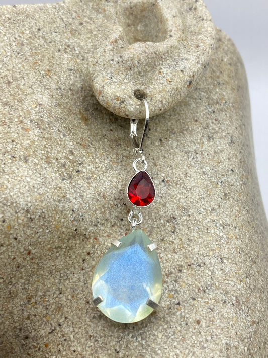 Antique Vintage Blue White Opal Glass Silver Dangle Earrings