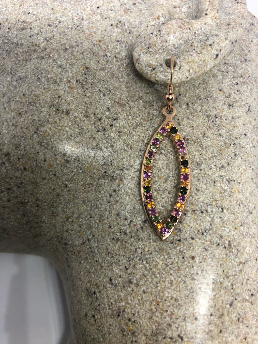 Vintage Genuine Mixed Color Tourmaline 925 Sterling Silver Rose Gold Finish Chandelier Dangle Hoop Earrings