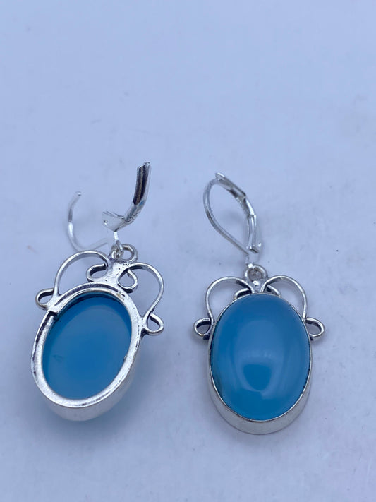 Vintage Genuine Blue Chalcedony Gemstone Filigree Sterling Silver Lever Back Chandelier Earrings