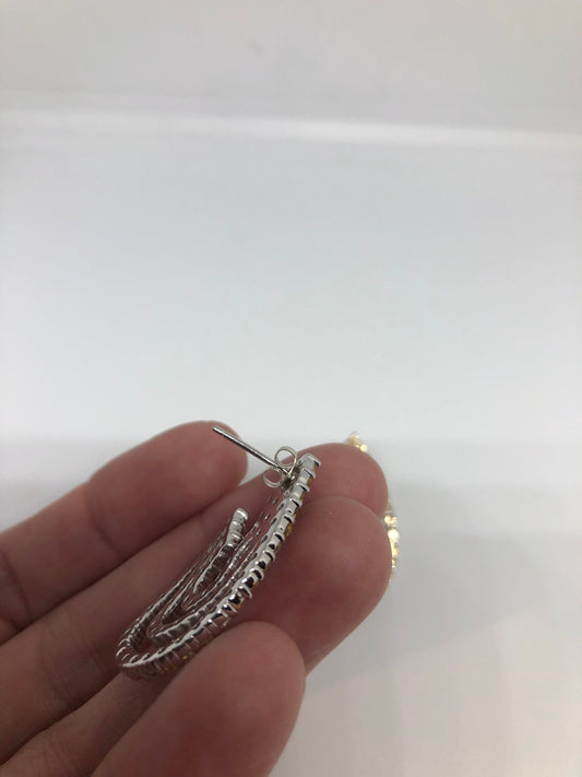 Vintage Handmade Sterling Silver diamond look Gemstone dramatic Earrings
