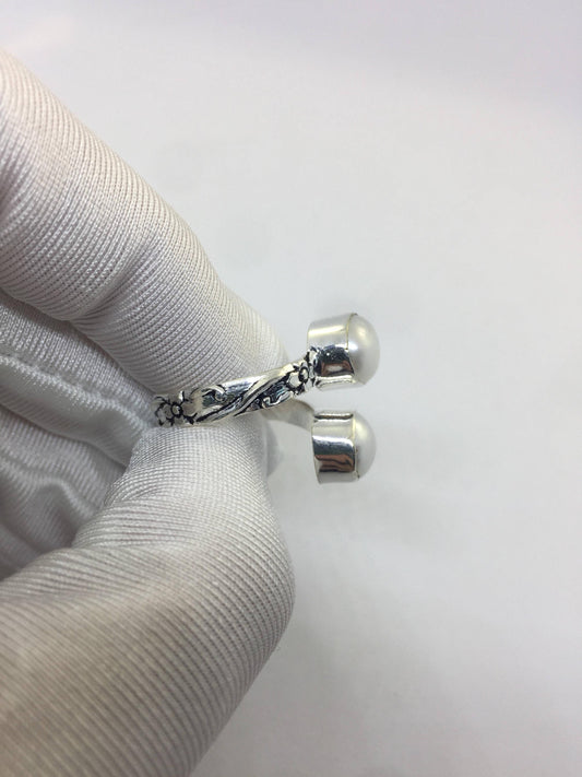 Antique White Pearl Filigree White Bronze Silver Adjustable Ring