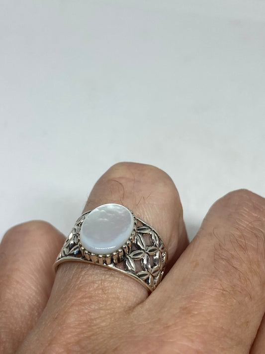 Antique White Mother of Pearl Filigree Sterling Silver Ring