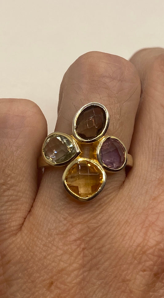 Vintage Citrine Smoky Topaz Green and Purple Amethyst 925 Sterling Silver Ring