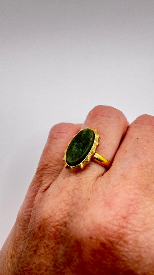 Vintage Green Jade Nephirite Golden 925 Sterling Silver Ring Size 6.5