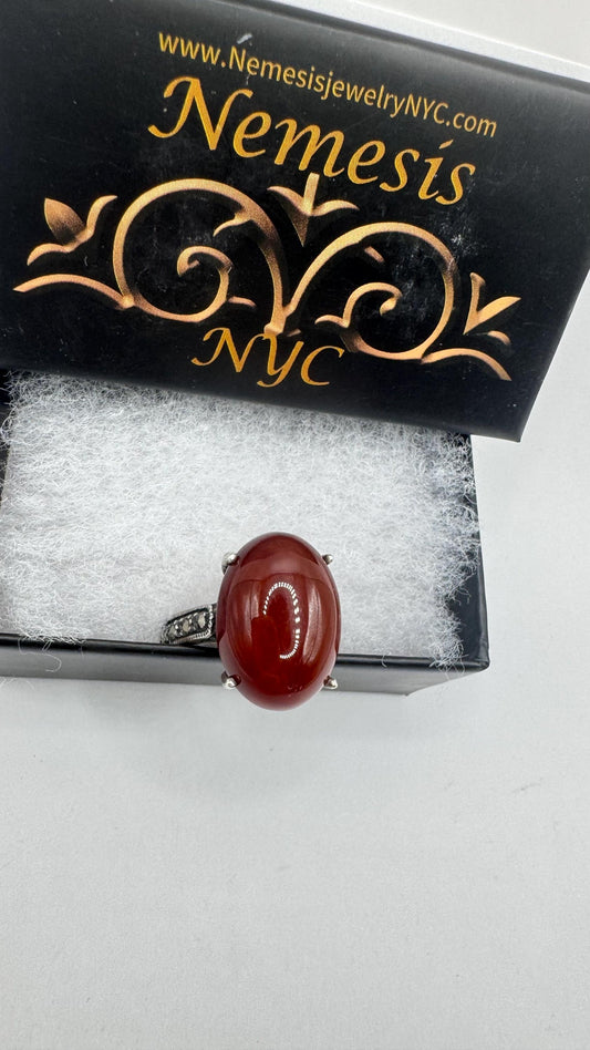 Vintage Genuine Red Carnelian 925 Sterling Silver Marcasite Ring
