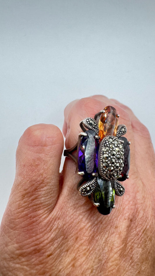 Vintage Marcasite Mixed CZ 925 Sterling Silver Cocktail Ring