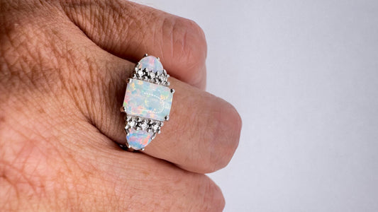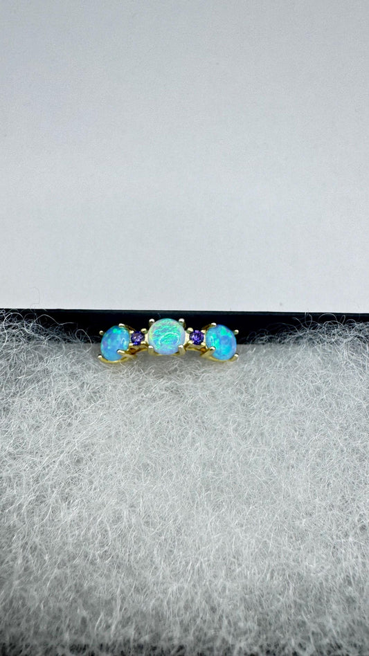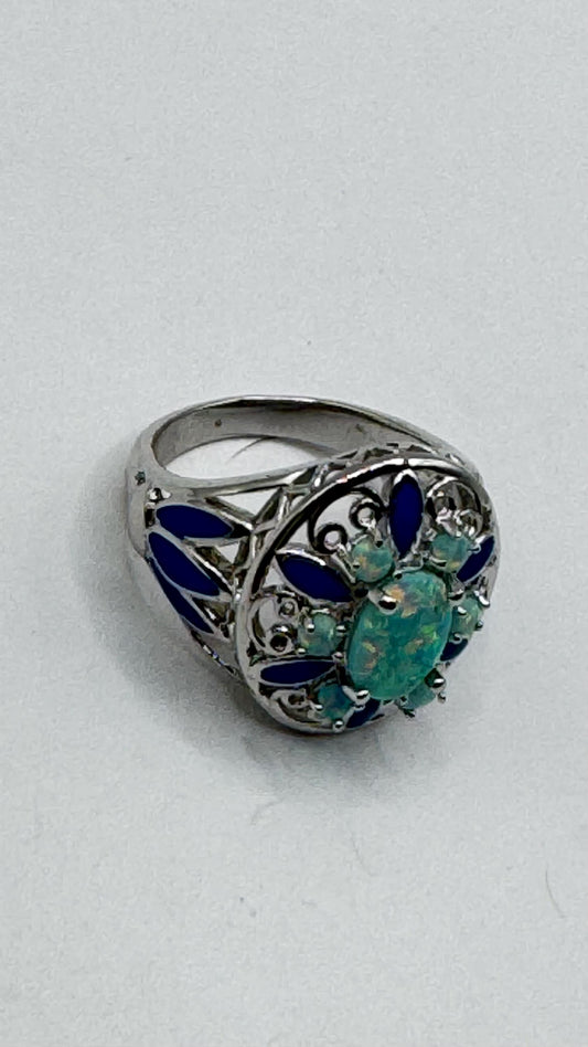 Vintage Blue Fire Opal Ring 925 Sterling Silver Rhodium Size 5