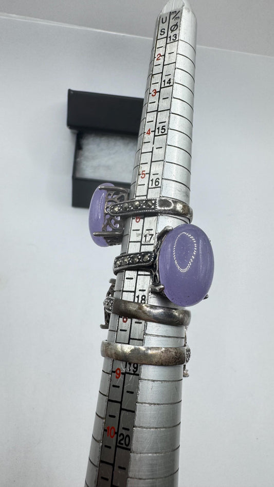 Vintage Purple Jade and marcasite Ring 925 Sterling Silver