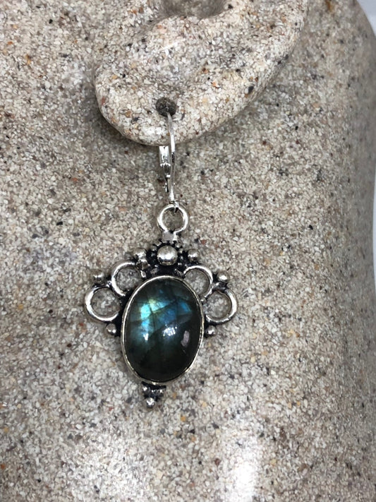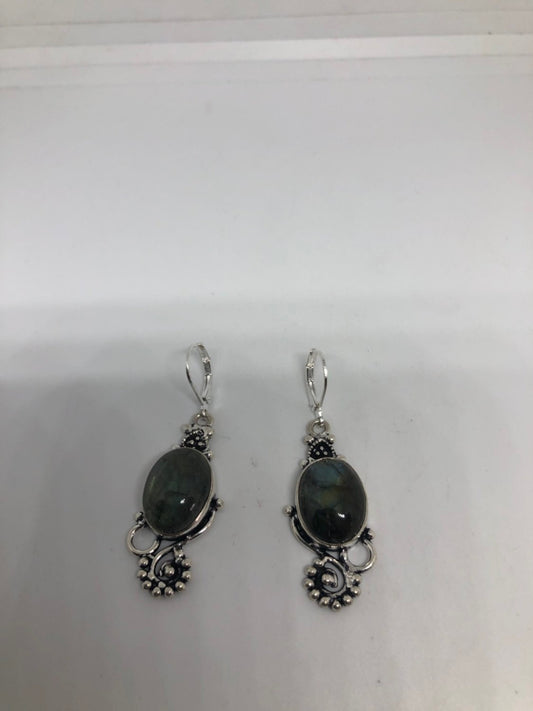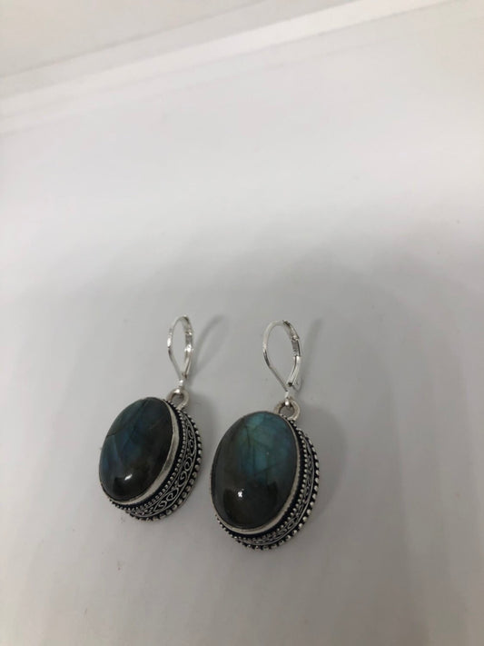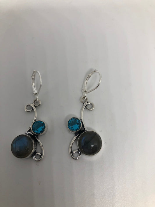 Antique Vintage Blue Topaz and Volcanic Glass Silver Dangle Earrings