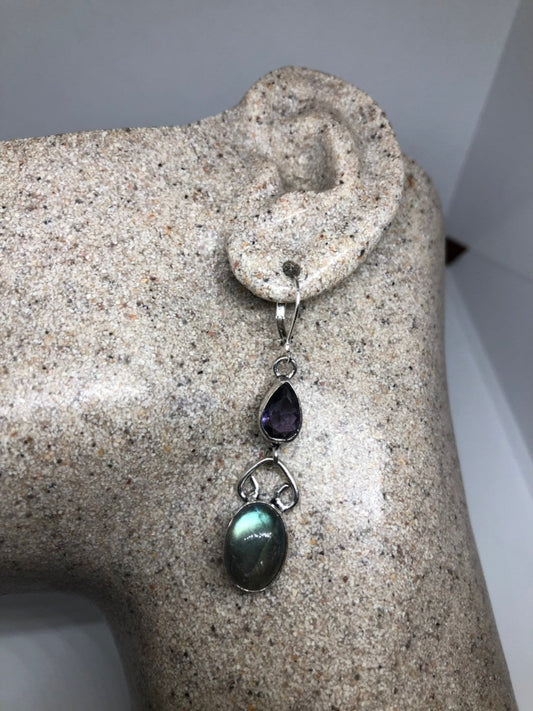 Vintage 925 Sterling Silver Purple Onyx Lever Back Earrings