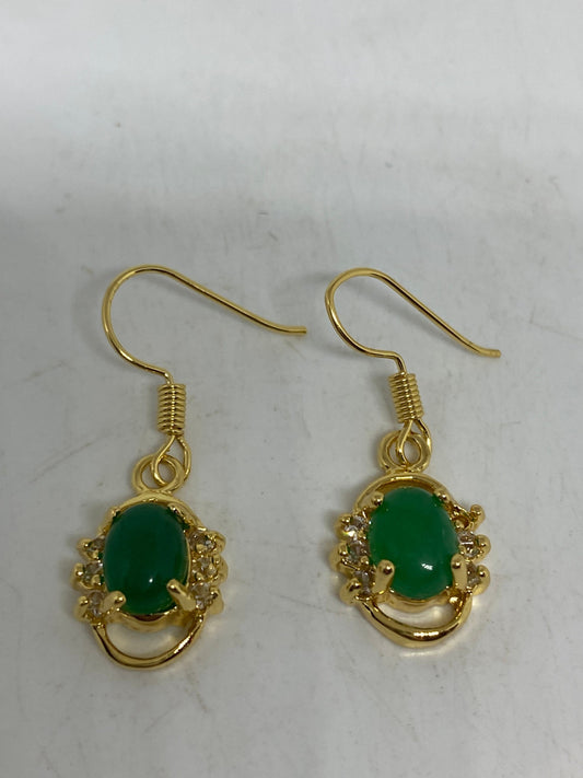 Vintage Fun Green Jade Gemstone Gold Bronze Earrings