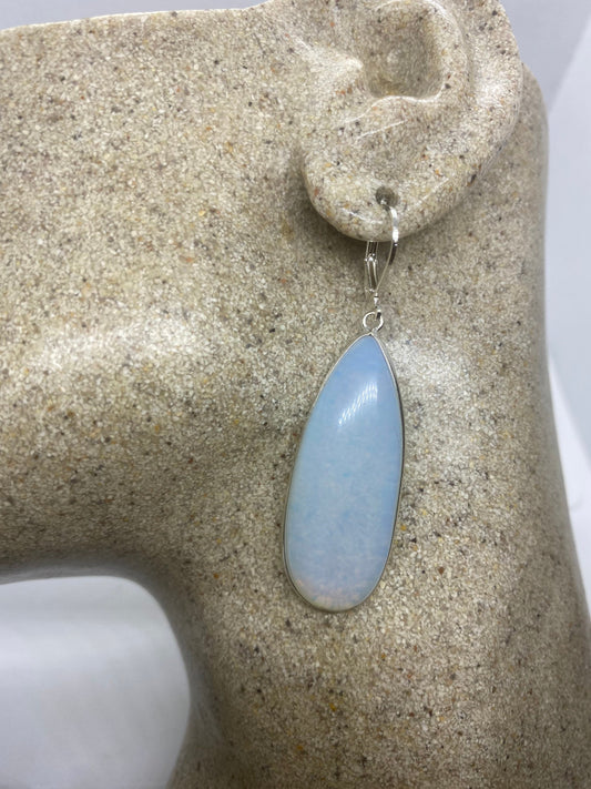 Antique Vintage Blue White Opal Glass Silver Dangle Earrings