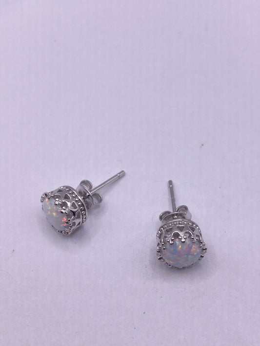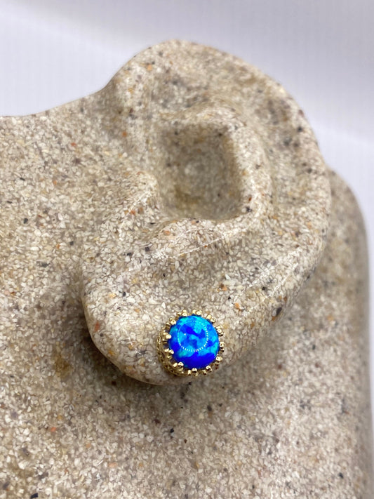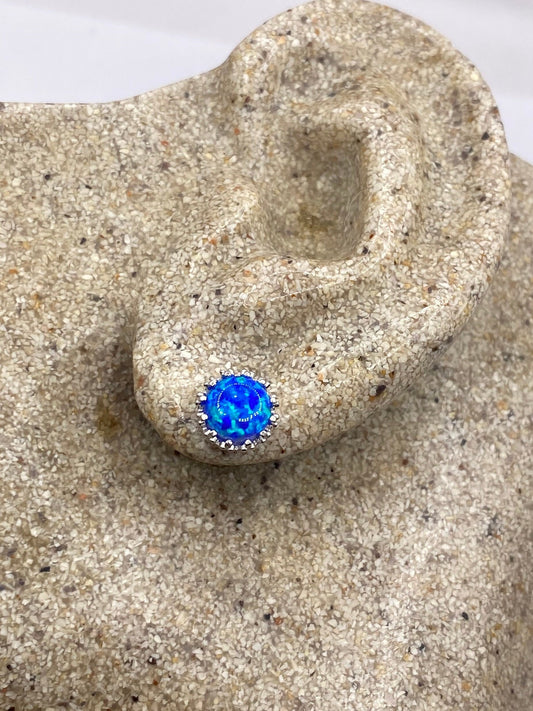Vintage Blue Opal Earrings 925 Sterling Silver Studs