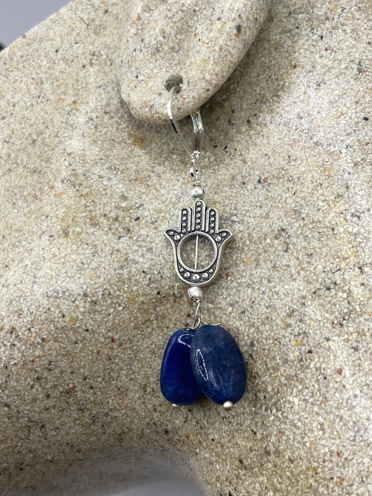 Vintage Blue Raw Sapphire Sterling Silver Lever Back Chandelier Earrings
