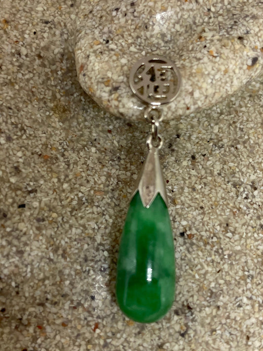 Vintage Green Jade Gemstone Sterling Silver Heart Earrings