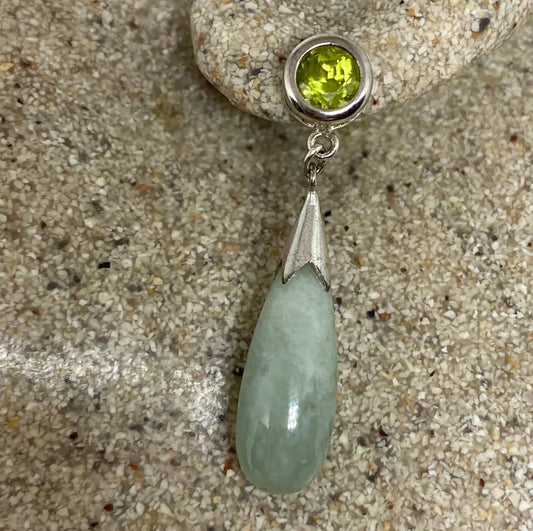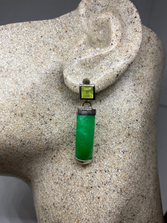 Vintage Green Jade and Peridot 925 Sterling Silver Earrings