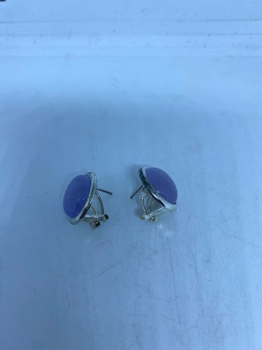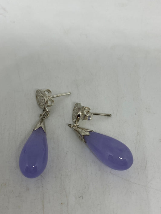 Vintage Genuine Purple Jade Gemstone Silver Earrings
