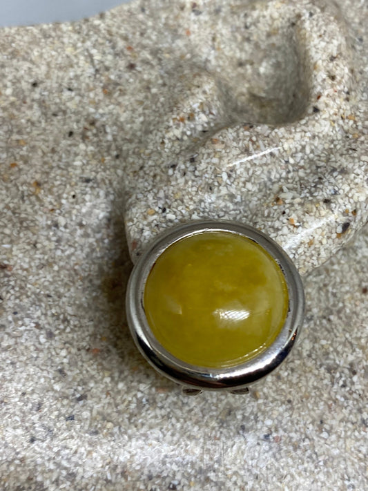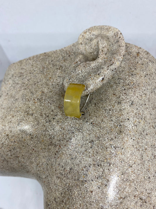Vintage Genuine Yellow Jade Gemstone Silver Earrings