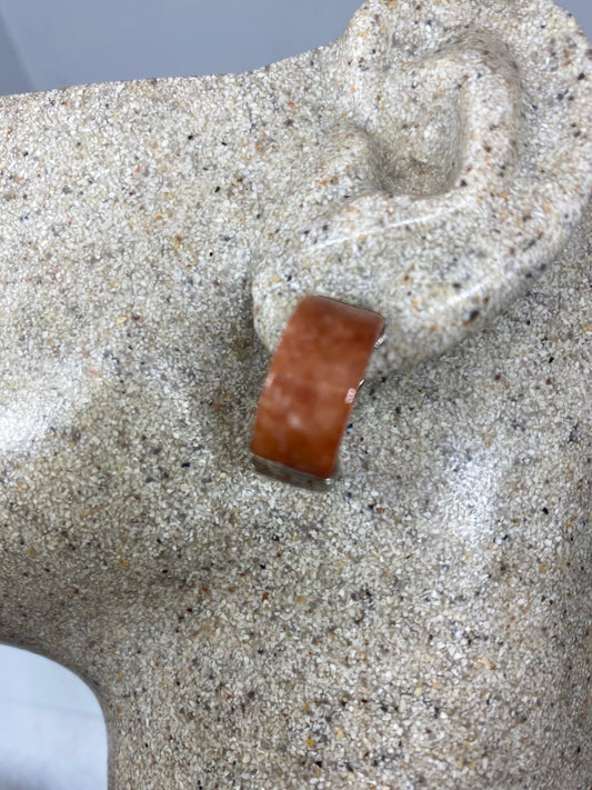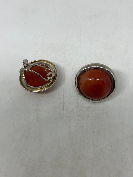 Vintage Genuine Orange Jade Gemstone Silver Earrings