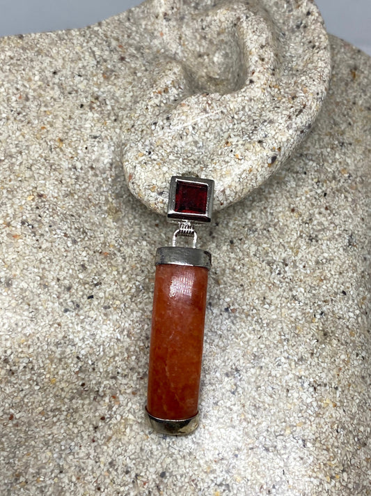 Vintage Genuine Orange Jade and Garnet Gemstone Silver Earrings