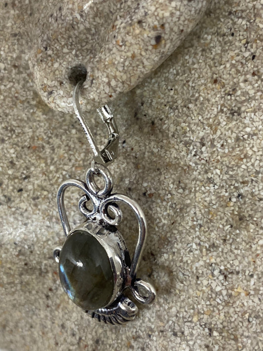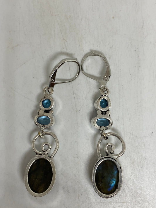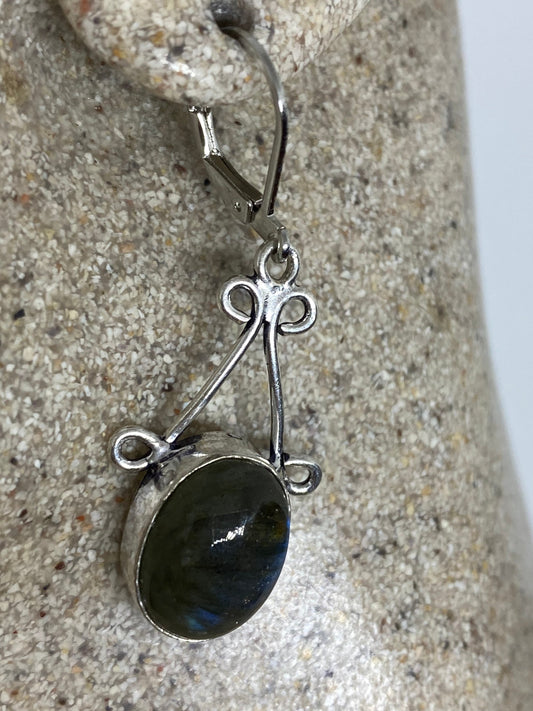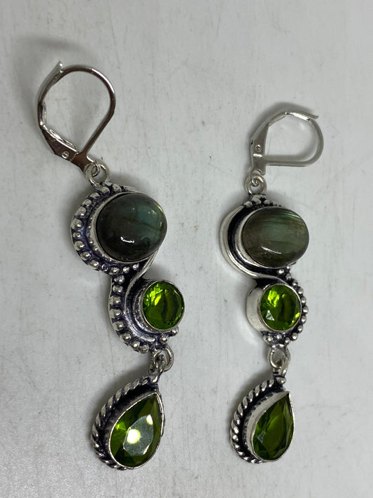 Vintage Rainbow Labradorite Peridot Earrings Dangle 925 Sterling Silver Leverbacks