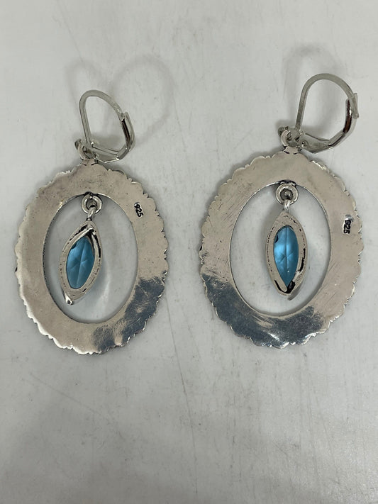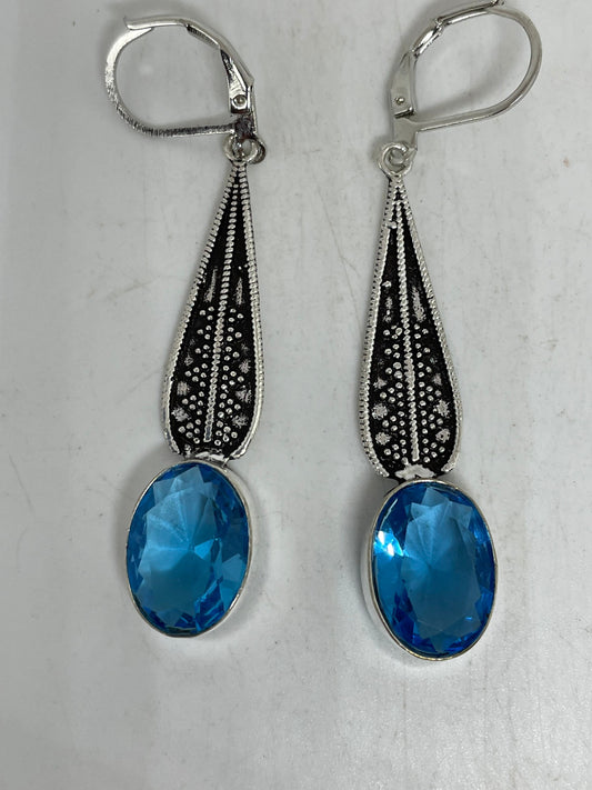Vintage Genuine Blue Topaz 925 Sterling Silver Lever Back Earrings