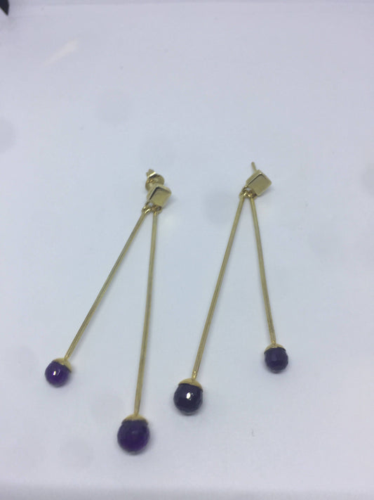 Vintage Genuine Blue Iolite Gemstone Golden 925 Sterling Silver Deco Dangle Earrings