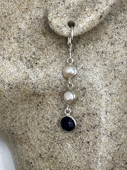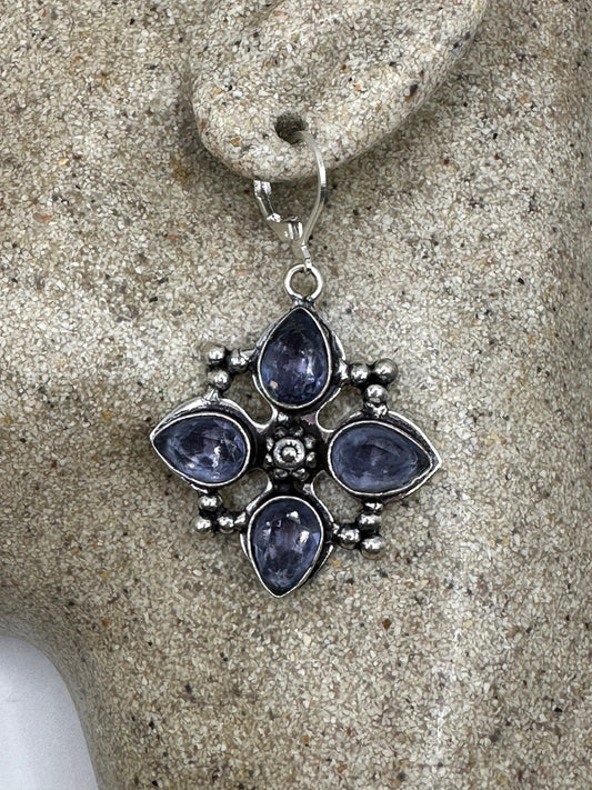 Vintage Blue Iolite Chandelier Earrings Silver Dangle