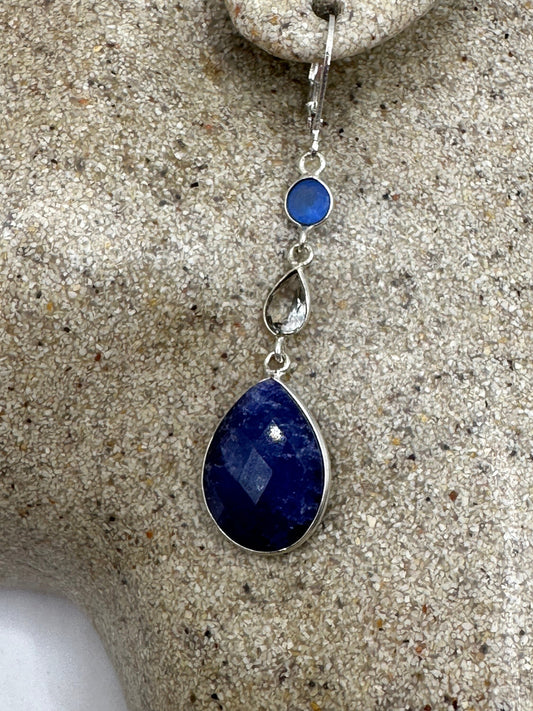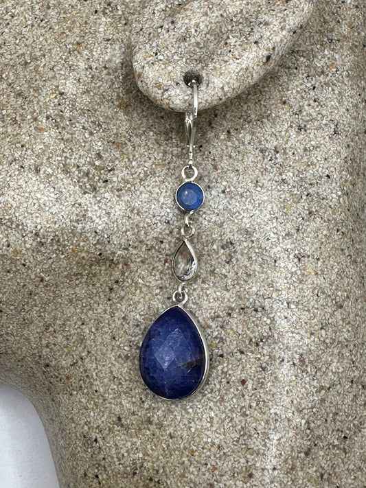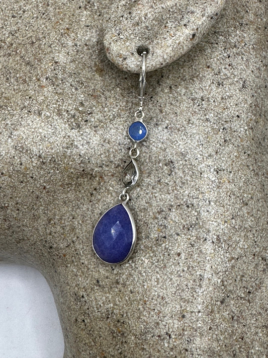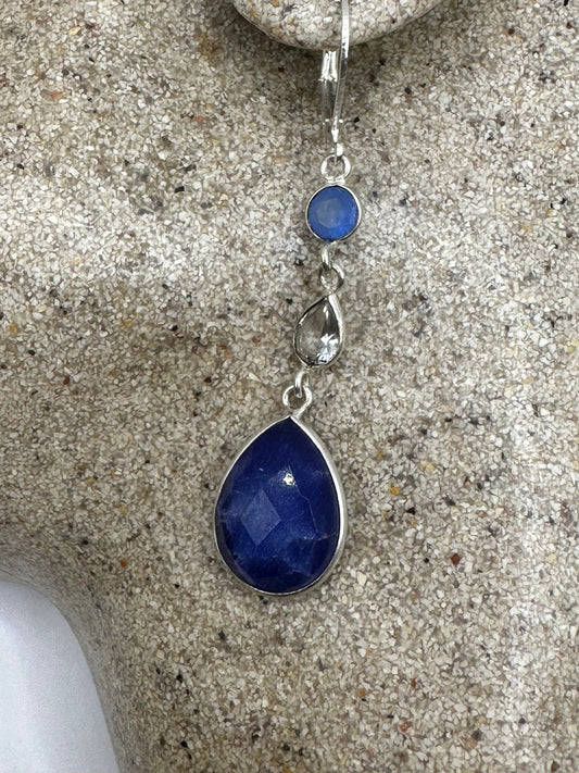 Vintage Blue Raw Sapphire Sterling Silver Lever Back Chandelier Earrings