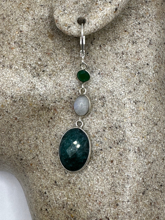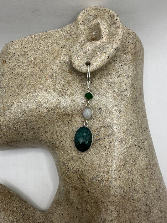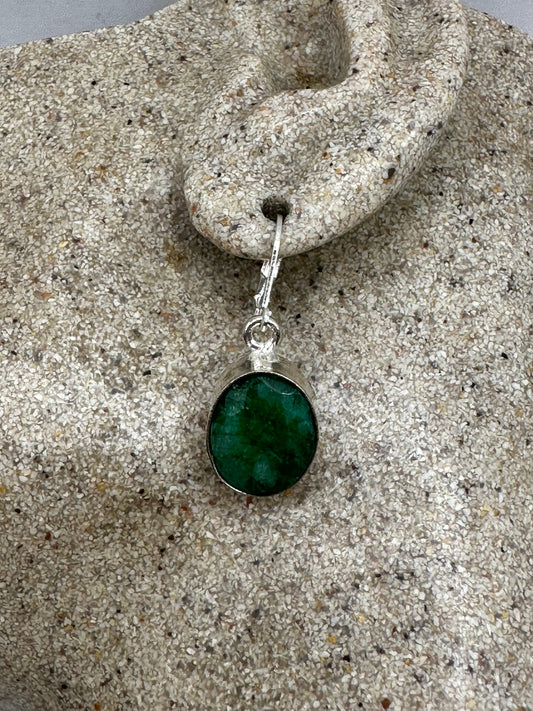 Vintage Raw Emerald Sterling Silver Lever Back Dangle Earrings